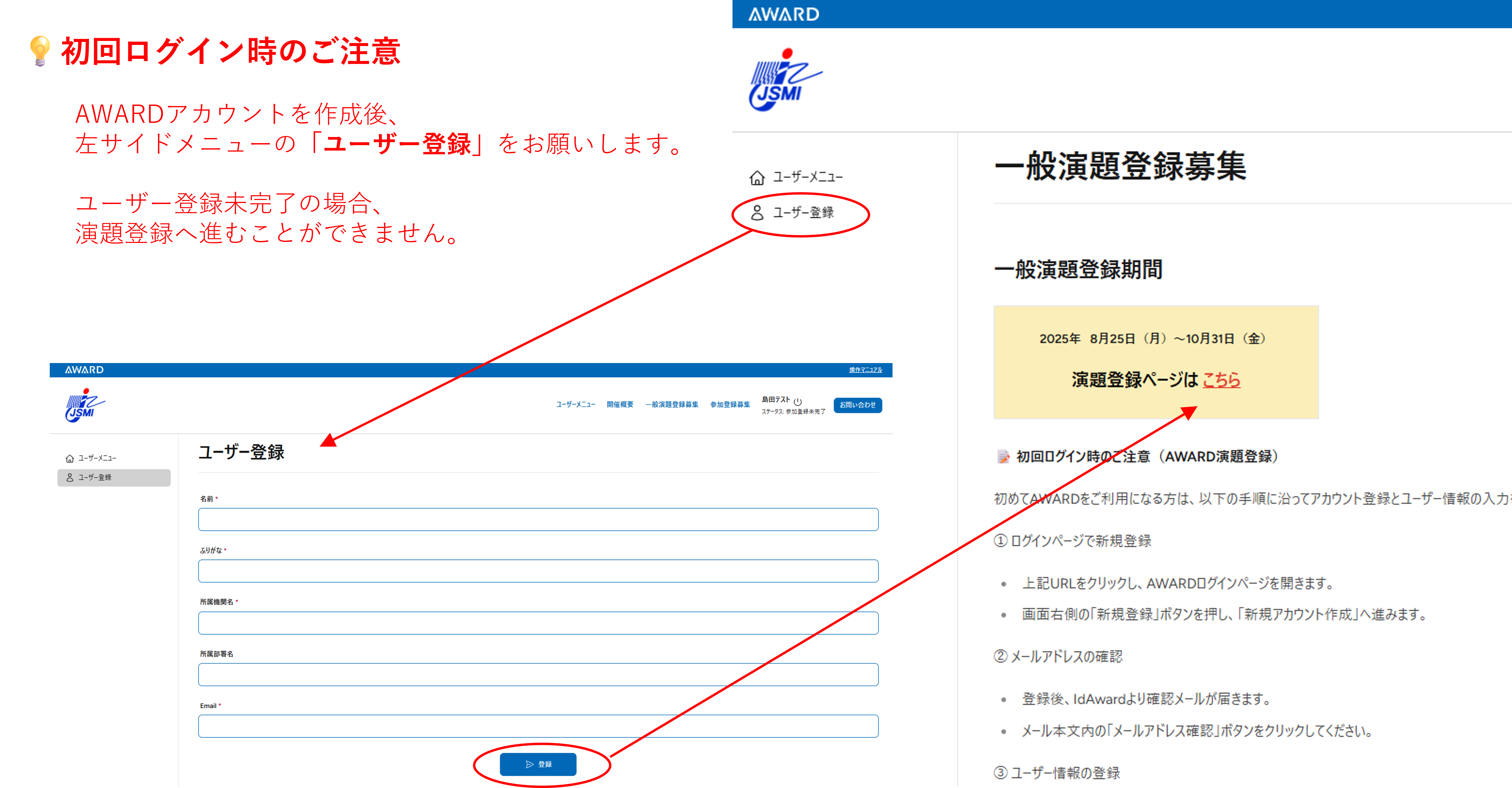 📝 初回ログイン時のご注意(AWARD演題登録)